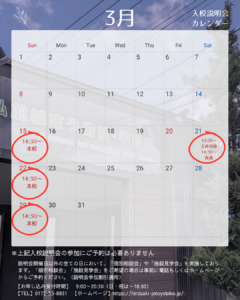 3月15日(日)からは以下の日程で入校説明会を行います。
